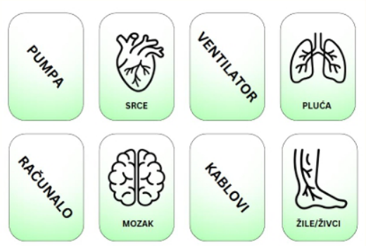 Djeca uparuju organe s tehničkim uređajima (npr. srce – pumpa), učeći funkcije i sličnosti. - Stroj koji nas pokreće