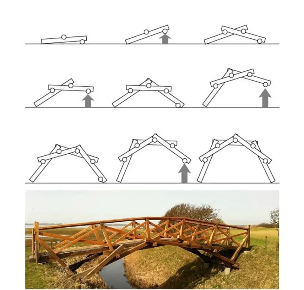 - Polaznici sastavljaju most prema slavnom dizajnu Leonarda da Vincija, koristeći samo izrezane drvene dijelove, bez čavala ili ljepila. Uče kako se težina i sila ravnomjerno raspoređuju kroz konstrukciju i što most čini stabilnim. Tijekom sklapanja ispituju kako svaki dio doprinosi ravnoteži cijelog mosta. Nakon izrade, testiraju nosivost mosta stavljanjem malih predmeta na njega. Ova vježba razvija razumijevanje geometrije, stabilnosti i inženjerskog razmišljanja.